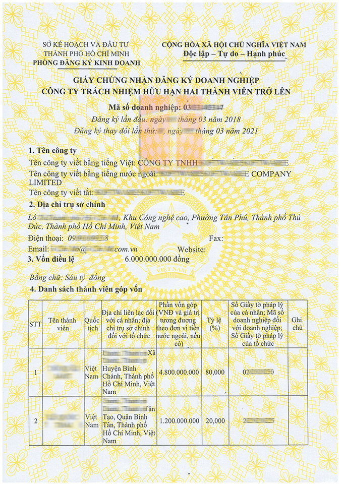 (Tiếng Việt) Thành lập công ty TNHH hai thành viên trở lên mới nhất